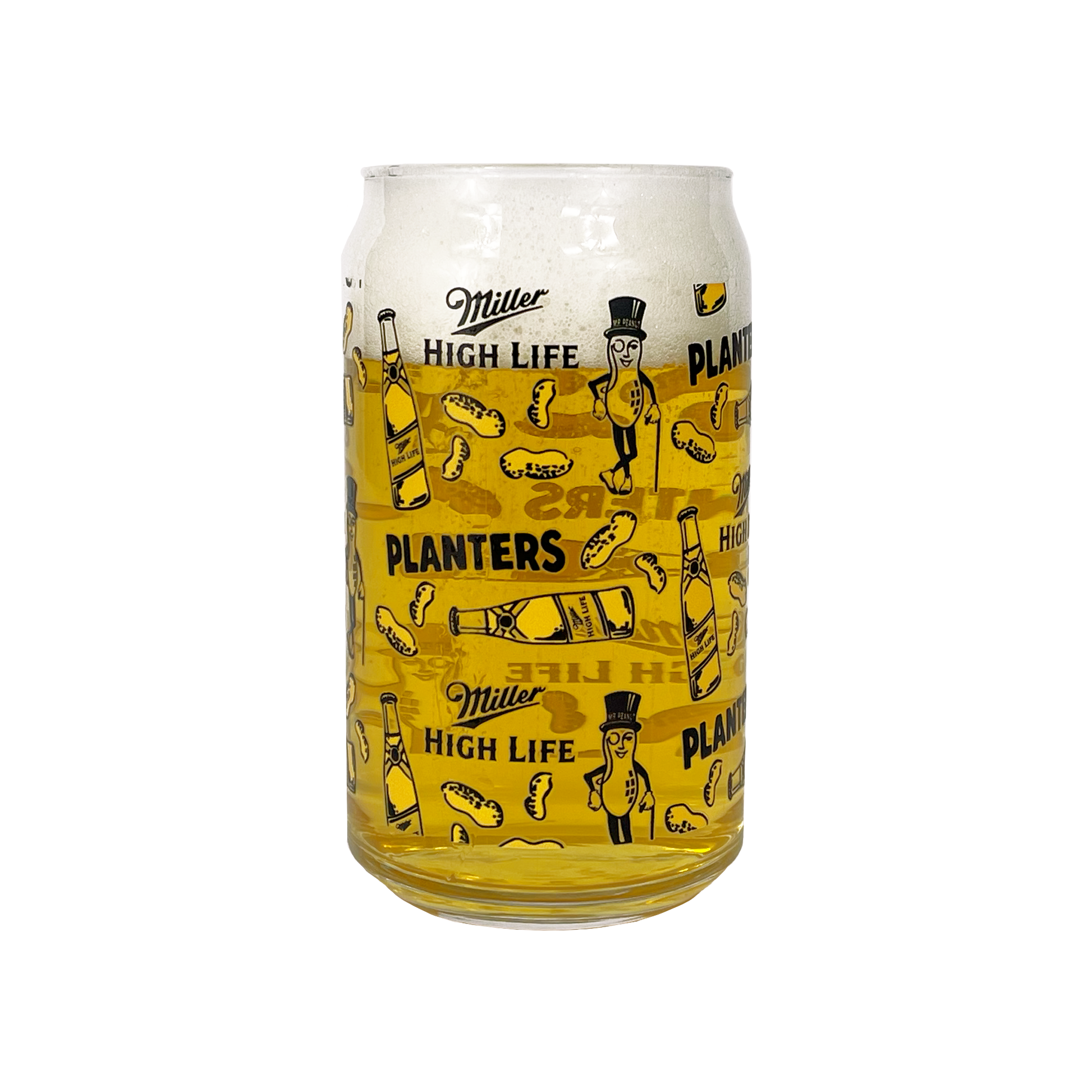 This unique 12 oz. can glass is the perfect fusion of two American classics: the crisp, refreshing taste of Miller High Life and the timeless charm of Mr. Peanut and Planters. Nothing goes better together than Planters Peanuts and Miller High Life.